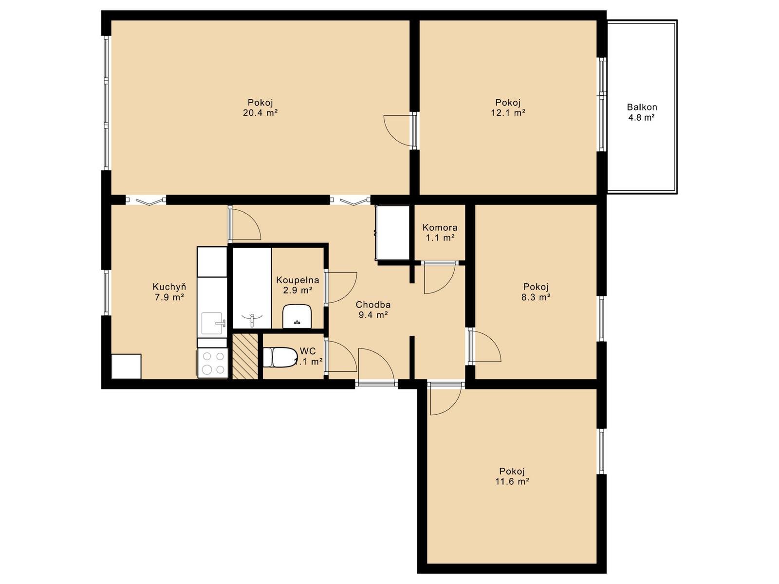 Prodej bytu 4+1 74 m², Komenského, Týn nad Vltavou