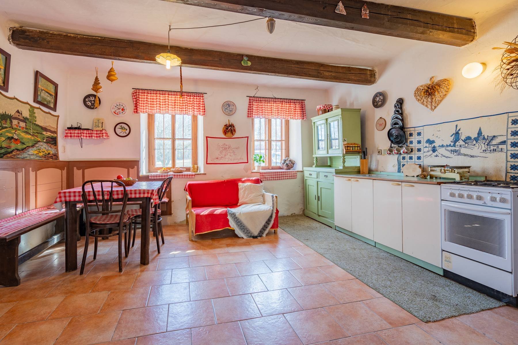 Vytápění je řešeno kamny na dřevo, napojení na obecní vodovod, odpad je sveden do septiku.