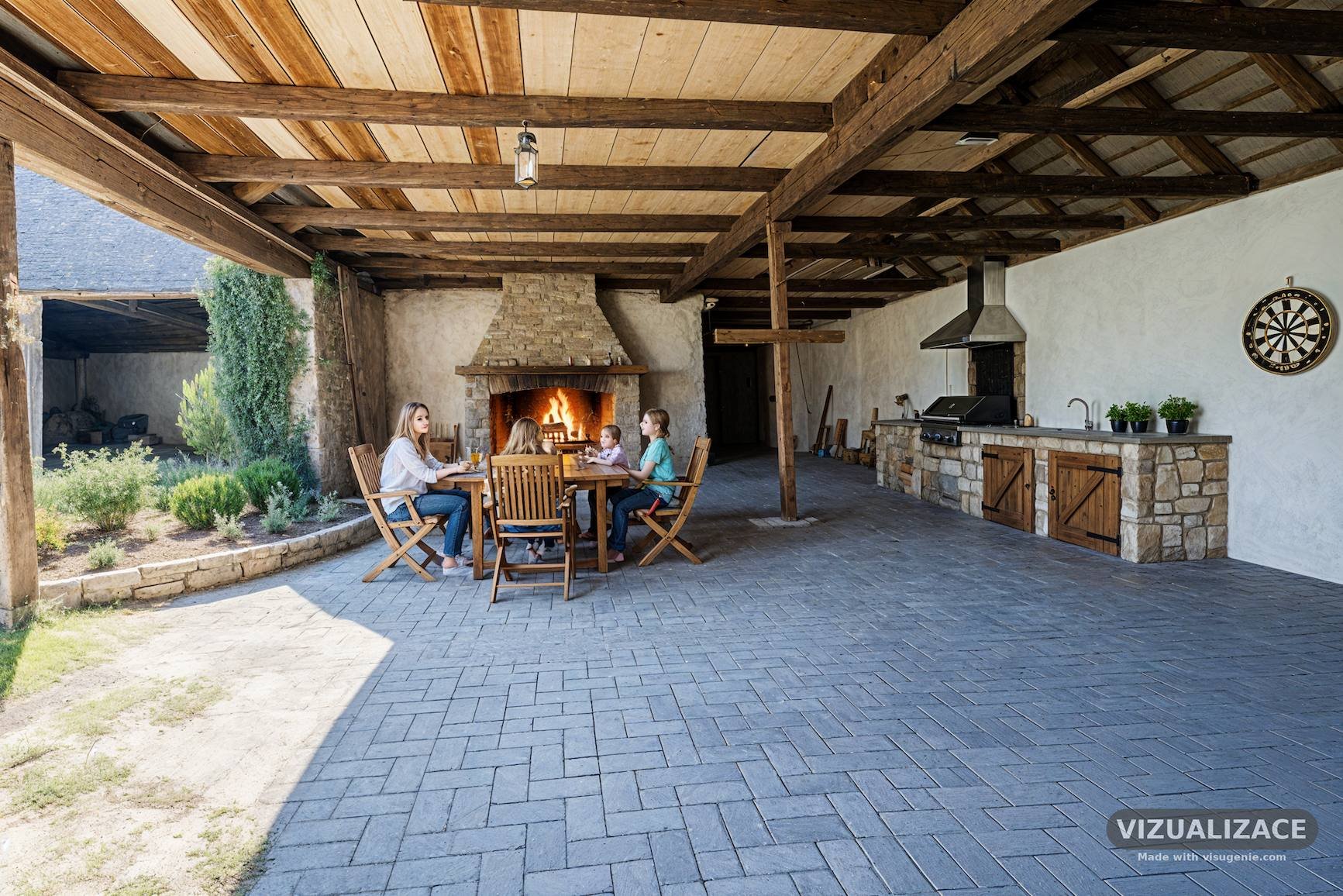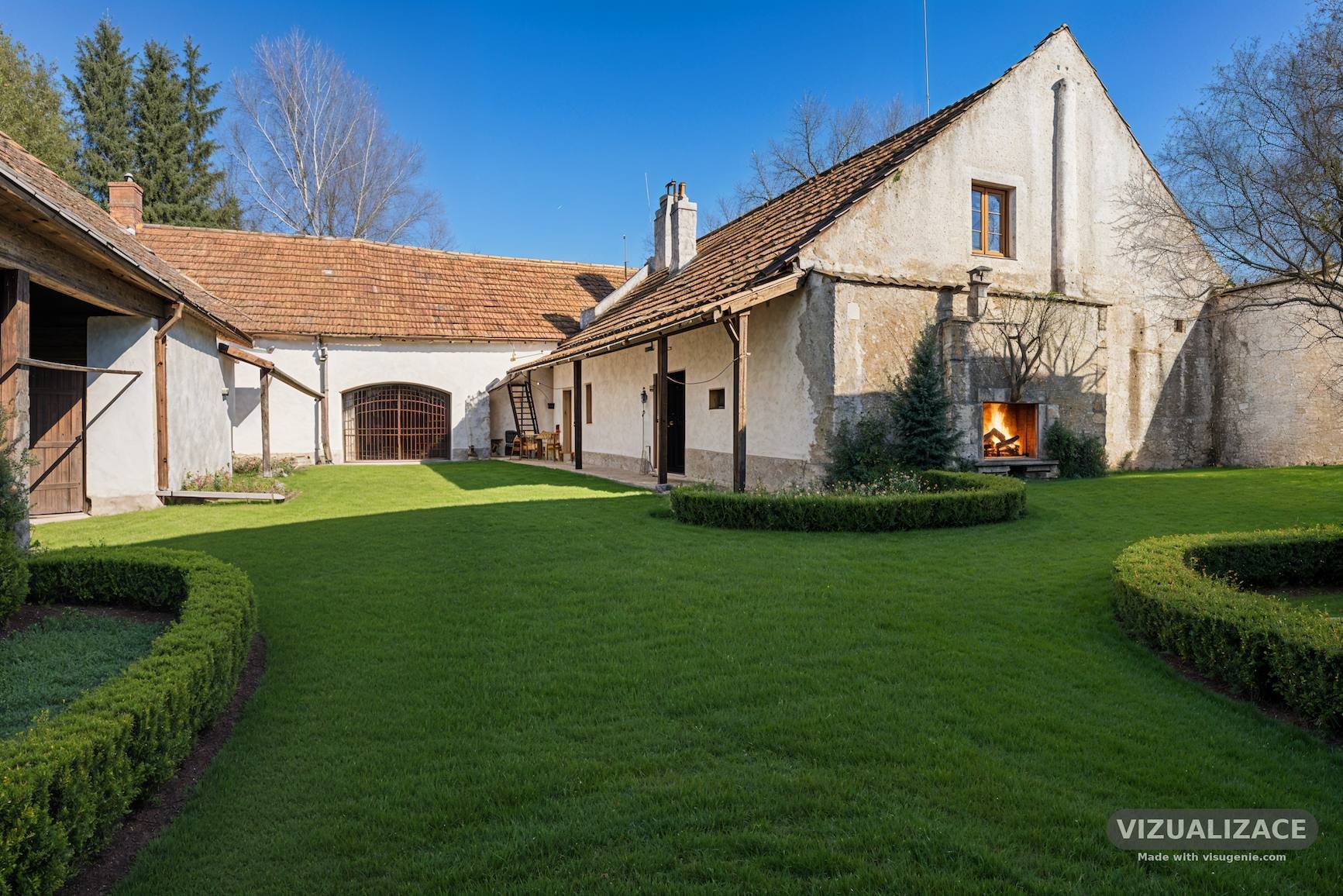 Velkou předností této nemovitosti je zcela uzavřený dvůr, který zajišťuje naprosté soukromí – dvůr je obklopen budovami celé usedlosti a není nijak rušen okolím.
